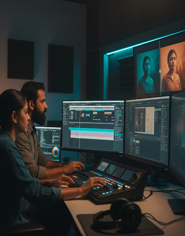 The program introduces learners to both the creative and technical dimensions of post-production. Topics include non-linear editing, sound synchronization, transition design, continuity, pacing, and visual rhythm. Students are trained using professional editing software and learn advanced DI (Digital Intermediate) and color grading techniques that enhance the visual mood of a film.